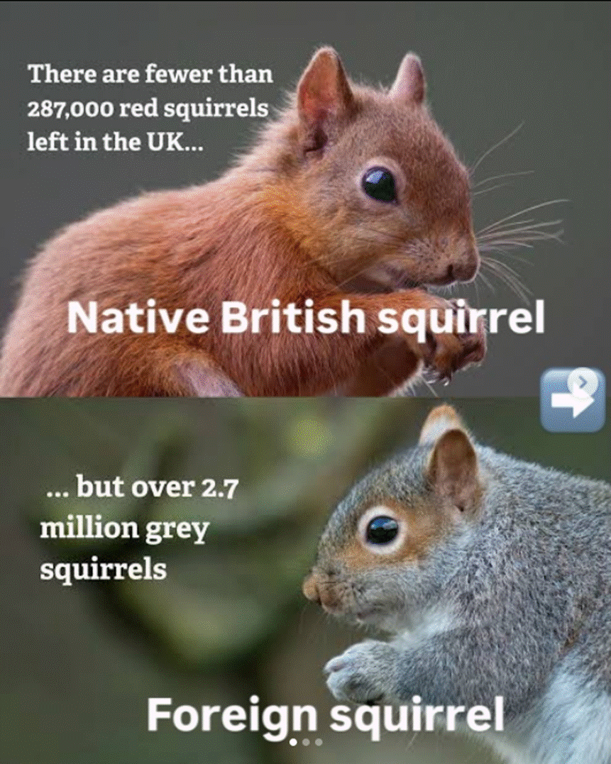 We are not the first to come up with this parallel. In the UK, the red squirrel serves as a mascot for those interested in defending the native British.
